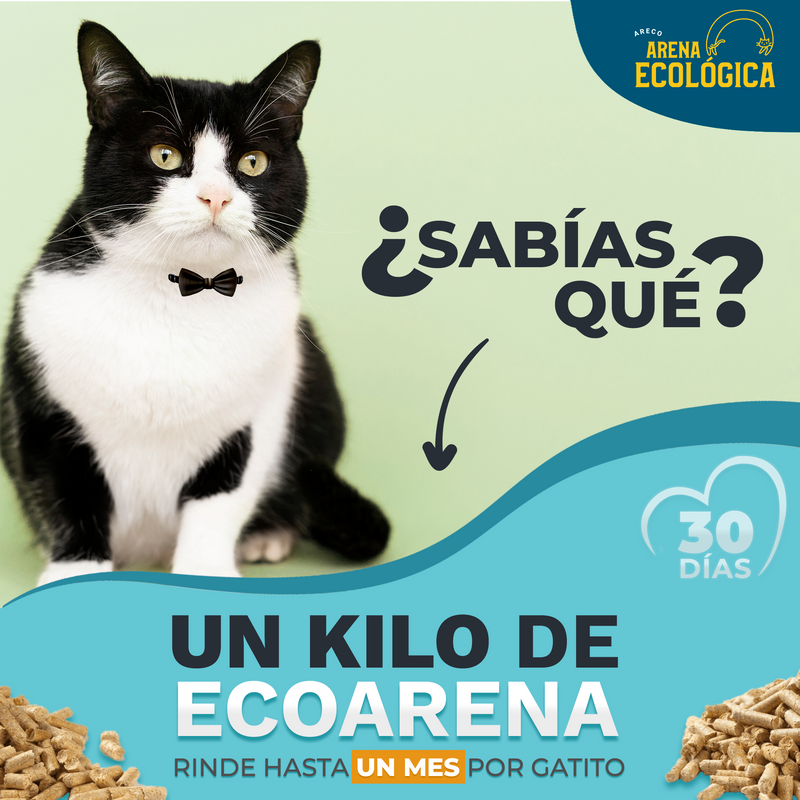 ARECO es una arena sanitaria 100% biodegradable, hecha de pellets absorbentes naturales que duran de 20 a 30 días por kilo para un gato. Libre de fragancias artificiales y químicos, es segura para tu mascota y el planeta. Producto colombiano, eficiente, económico y de alta calidad. ¡La elección ecológica y segura para tu gato! 😺🌿